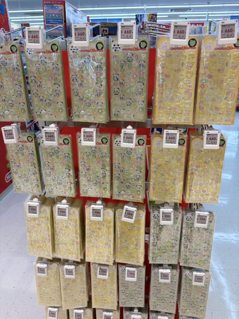 ヨドバシ以上にボンボンドロップシール、おもちゃ売り場のキャラシールや、事務用ラベルが意外と豊富です。