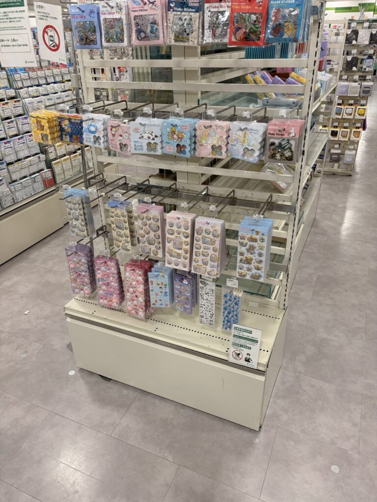 海外製ステッカー、ミセスグロスマン、ケアベアなど「映える」シールが多く揃っています。ハンズやロフトほど販売は多くないです。